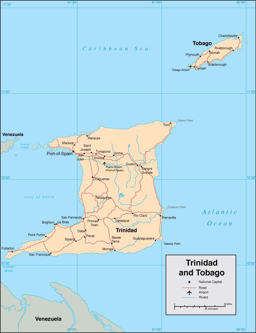Trinidad & Tobago Black & White Road map in Adobe Illustrator